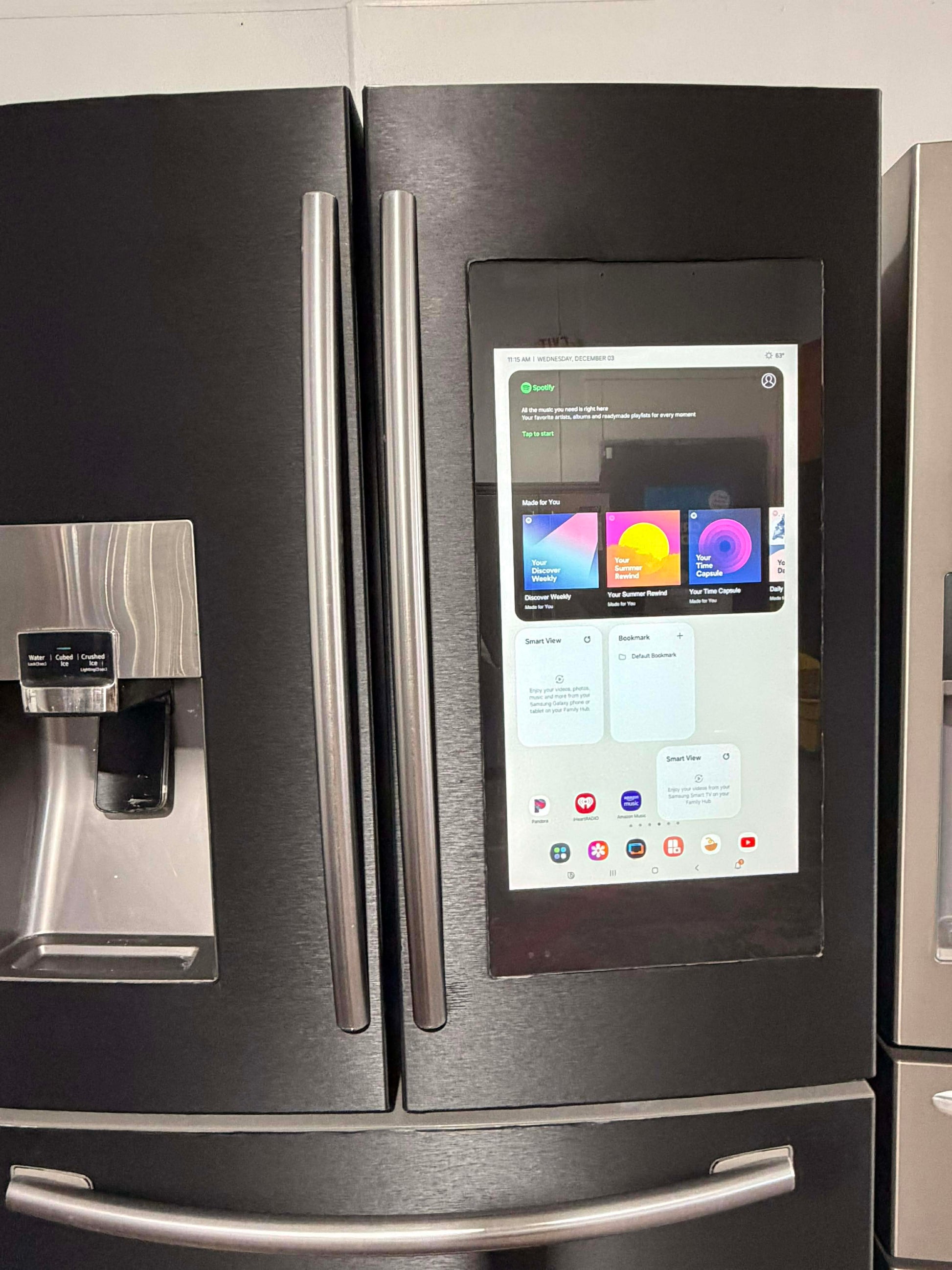 The Samsung Family Hub French Door Refrigerator combines advanced cooling technology with intelligent home integration. Its Flex Zone compartment adapts to your storage needs, shifting between refrigeration and freezing modes for maximum versatility. The Family Hub display keeps your household connected with built-in apps, recipe suggestions, and grocery management tools. Twin cooling systems maintain optimal temperature and humidity levels throughout the unit, while the water and ice dispenser delivers filtered convenience. Designed for families seeking both performance and smart home connectivity, this refrigerator streamlines meal planning and food preservation.